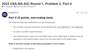 2025 USAAIO Round 1, Problem 2, Part 6 2025 USAAIO Round 1, Problem 2, Part 6真题图片展示⇓ 如需USAAIO全部真题资料,请扫码领取⇓ USAAIO竞赛新赛季备赛已开启,扫码领取USAAIO真题&参考书 欢迎咨询【USAAIO竞赛辅导课程】 微信在线客服