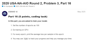2025 USAAIO Round 2, Problem 3, Part 16 2025 USAAIO Round 2, Problem 3, Part 16真题图片展示⇓ 如需USAAIO全部真题资料,请扫码领取⇓ USAAIO竞赛新赛季备赛已开启,扫码领取USAAIO真题&参考书 欢迎咨询【USAAIO竞赛辅导课程】 微信在线客服